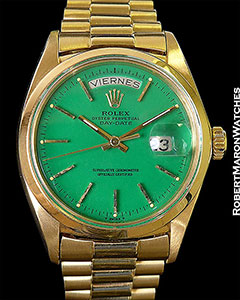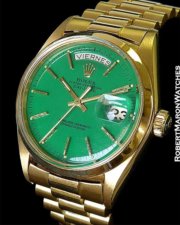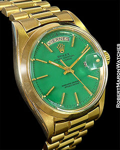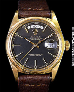 Vintage Rolex collectors will immediately recognize this watch as a rarity. Non-watch people will immediately recognize this watch as elegant and beautiful. While the vintage Rolex Day Date model 1803 is common in the watch world, with its characteristic fluted bezel, this model 1802 with its original smooth bezel is quite rare. Add to this the original matte gilt black dial, and you have a very rare and collectable vintage Rolex on your wrist!