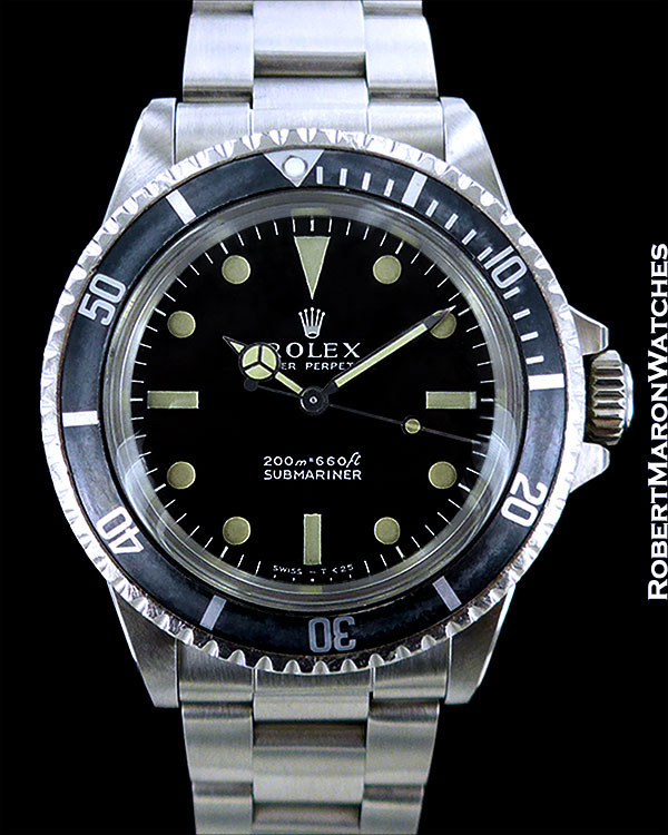 This is a rare, very early production Rolex Submariner reference 5513. While reference 5513s abound, the very early 5513s are mostly extinct. Remember that these watches were made for and used by divers. Back in the early 1960s, it would not have occurred to a non-diver to buy or wear a diver's watch. Dive watches were worn by divers and, not surprisingly, many were used to the point where they were simply discarded as being beyond hope of repair. Surely, none of the original owners could have guessed the prices these early watches would go on to command.